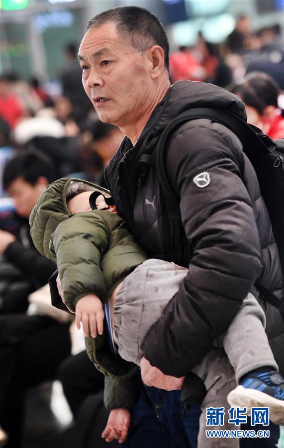 1月14日,在西安北站候車大廳,一位旅客抱著睡熟的孩子等待上車。路再遠、再艱辛,也擋不住回家的腳步。在西安北站的每一個角落,處處充滿溫情和歸鄉(xiāng)的盼望。連日來,西安北站日均發(fā)送旅客12.1萬人次,一列列春運的列車,載著中國人的鄉(xiāng)愁,駛向遠方。新華社記者陶明攝