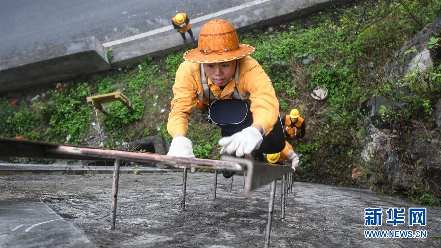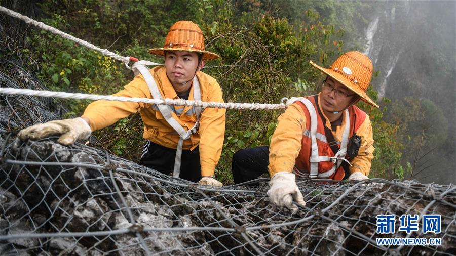 1月14日,百色工務(wù)段白水河橋隧工區(qū)班組成員在搜山掃石。在中國鐵路南寧局集團(tuán)公司百色工務(wù)段白水河橋隧工區(qū),有一個由14名工人組成的班組。他們常年像“爬山虎”一樣行走攀爬在地形險峻、云霧繚繞的高山上,負(fù)責(zé)南昆鐵路轄區(qū)路段的搜山掃石工作,清除一切可能危害鐵路行車安全的因素,保障旅客出行安全。新華社記者張愛林?jǐn)z
