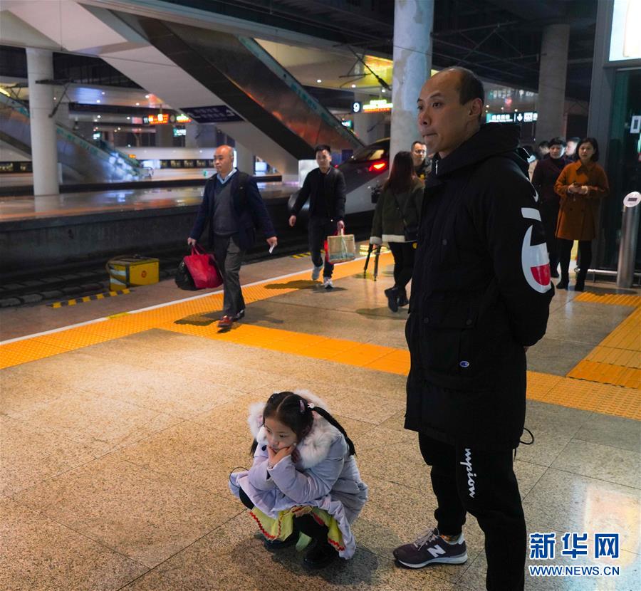 1月3日,由于卞菁值乘的動車晚點,等待時間較長的朱梓芮(左)流露出稍許失望。新華社記者 胡晨歡 攝