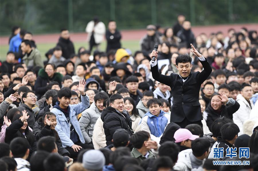 1月15日,中央歌劇院男中音歌唱家王藝清在慰問演出中與觀眾互動(dòng)。 當(dāng)日,“我們的中國(guó)夢(mèng)”——文化進(jìn)萬家中央歌劇院文藝小分隊(duì)來到重慶市石柱土家族自治縣第一職業(yè)學(xué)校進(jìn)行慰問演出,為學(xué)校的三千多名師生帶來了一場(chǎng)精彩的音樂大餐。 新華社記者 王全超 攝