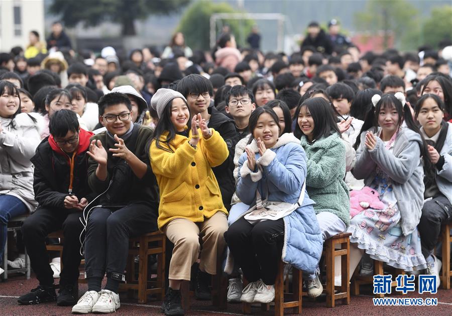1月15日,師生們?cè)谟^看慰問演出。 當(dāng)日,“我們的中國(guó)夢(mèng)”——文化進(jìn)萬家中央歌劇院文藝小分隊(duì)來到重慶市石柱土家族自治縣第一職業(yè)學(xué)校進(jìn)行慰問演出,為學(xué)校的三千多名師生帶來了一場(chǎng)精彩的音樂大餐。 新華社記者 王全超 攝