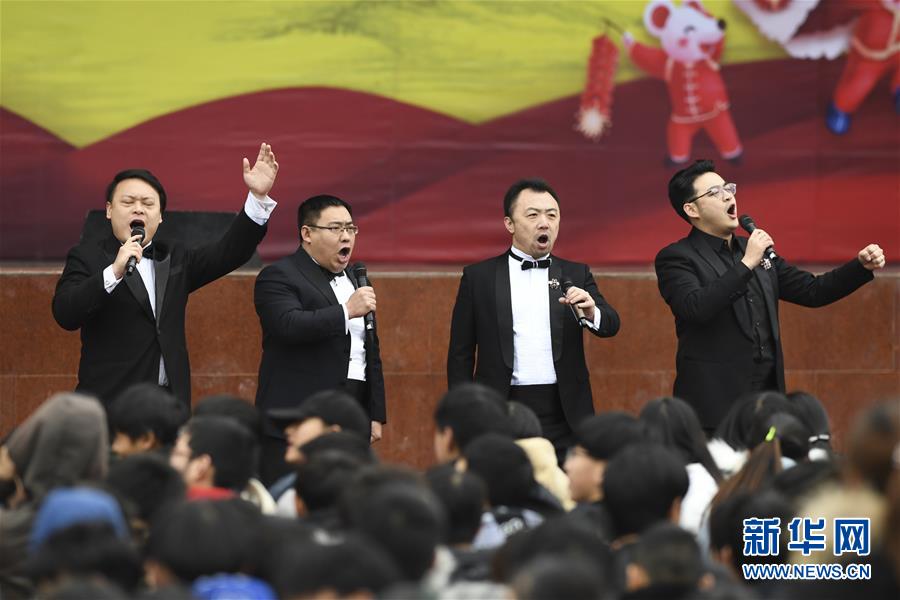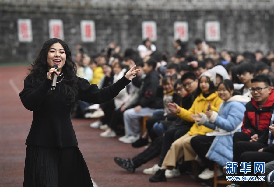 1月15日,中央歌劇院的歌唱家們?cè)谖繂栄莩鲋斜硌菽新曀闹爻?當(dāng)日,“我們的中國(guó)夢(mèng)”——文化進(jìn)萬家中央歌劇院文藝小分隊(duì)來到重慶市石柱土家族自治縣第一職業(yè)學(xué)校進(jìn)行慰問演出,為學(xué)校的三千多名師生帶來了一場(chǎng)精彩的音樂大餐。 新華社記者 王全超 攝