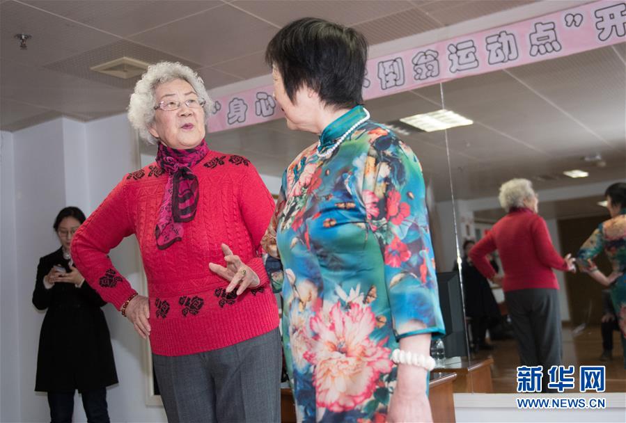 1月17日,王育華(左)向杭州市社會(huì)福利中心模特隊(duì)一名隊(duì)員請(qǐng)教如何擺姿勢(shì)。新華社記者 翁忻旸 攝