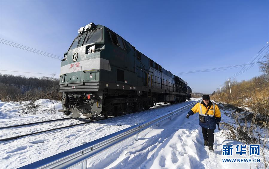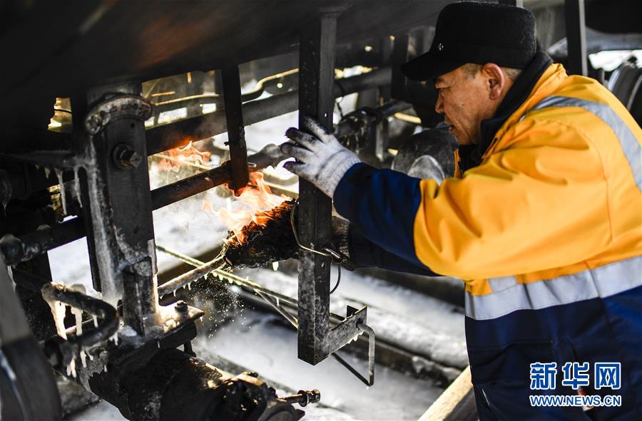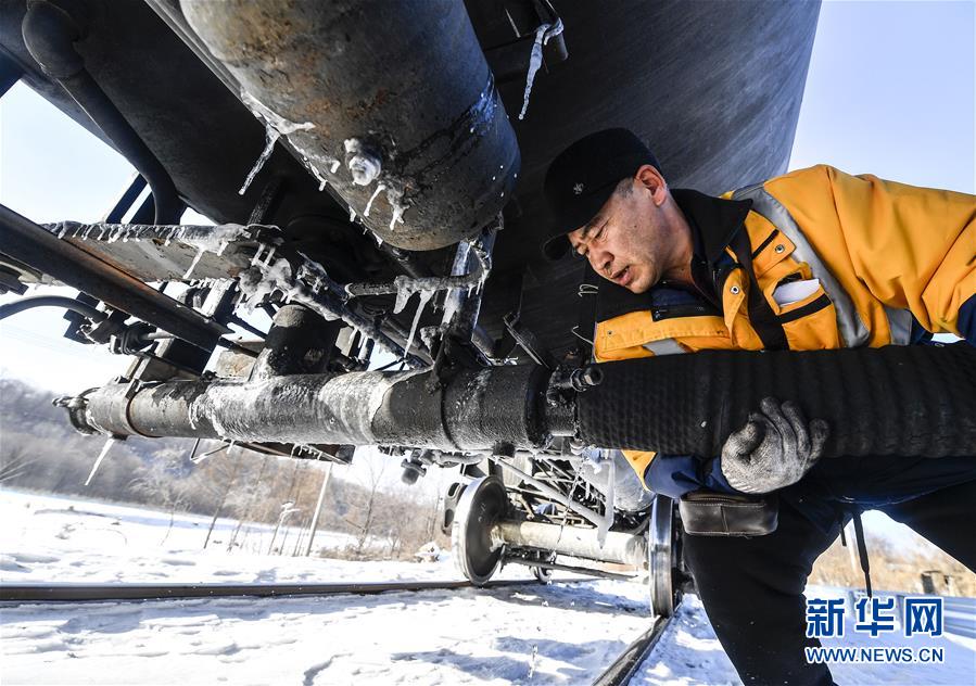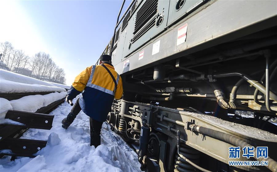林海間的“送水小火車(chē)” 調(diào)車(chē)員對(duì)“送水小火車(chē)”進(jìn)行出行前的檢查作業(yè)(1月17日攝)。新華社記者 許暢 攝