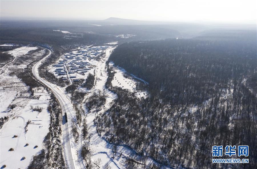“送水小火車(chē)”行駛在林海間,前往送水地點(diǎn)(1月17日攝,無(wú)人機(jī)照片)。新華社記者 許暢 攝