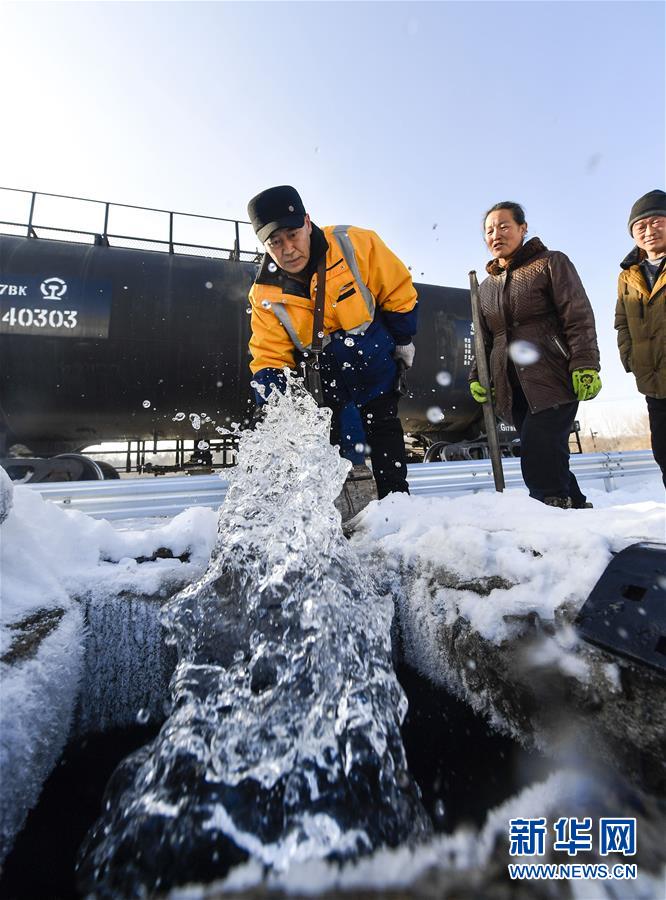 臨近送水地點(diǎn),送水員黃衛(wèi)東指揮列車(chē)前往??奎c(diǎn)(1月17日攝)。新華社記者 許暢 攝