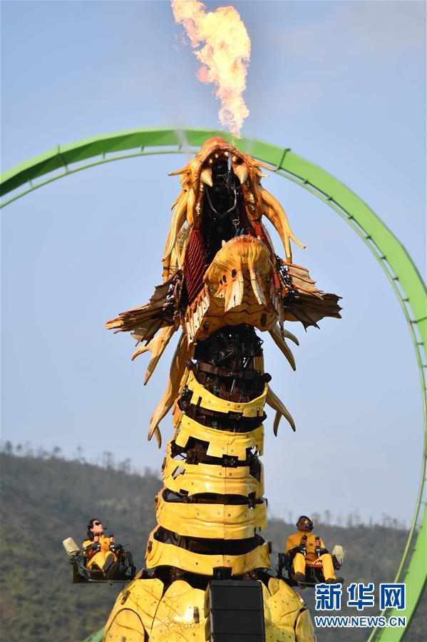 1月18日,大型機(jī)械裝置藝術(shù)品“龍馬精神”在珠海長隆海洋王國巡游展示。