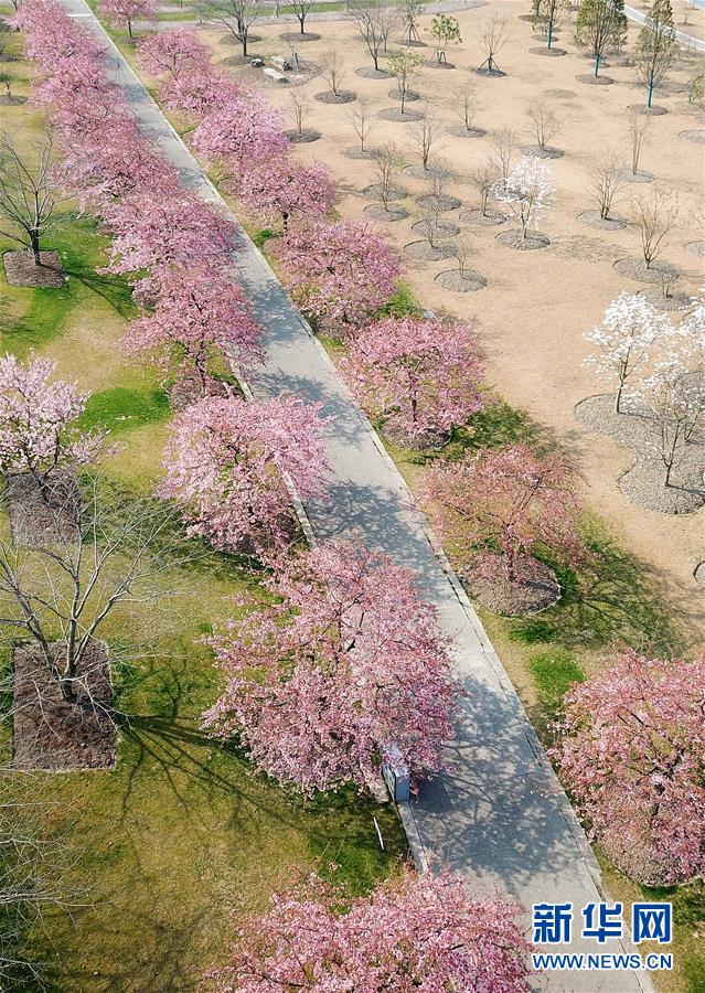這是2月24日在上海松江辰山植物園內拍攝的櫻花小徑(無人機照片)。 新華社記者 方喆 攝