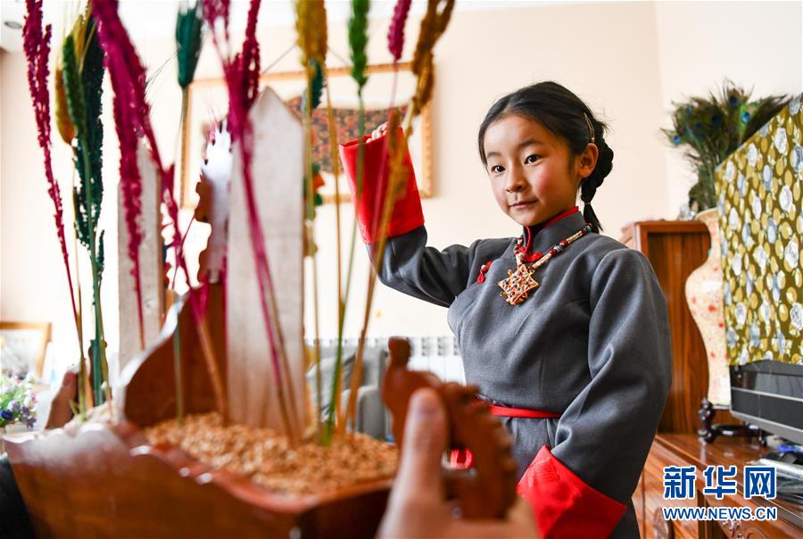 一名身著藏裝的藏族小姑娘在吃切瑪(2月24日攝)。當(dāng)日是藏歷新年初一,西藏各地群眾歡度藏歷新年。受新冠肺炎疫情影響,當(dāng)?shù)靥岢娫挵菽辍⑸俪鲩T(mén)、不聚集,居家享受新年樂(lè)趣。新華社記者晉美多吉攝