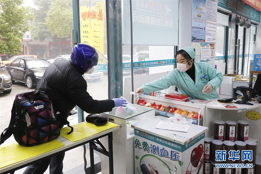 2月22日,王春波將藥品遞給前來買藥的外賣騎手。王春波是武昌天濟大藥房錦繡江南店的一名店員,在武漢下達“所有小區(qū)全面實施封閉管理”的禁令之后,很多居民買藥成了麻煩事,尤其是獨居的老年人。她知道后,主動聯(lián)系物業(yè)告知大家,如果有需要,她可以上門送藥。現(xiàn)在,她和同事每天要派送100多單藥品,大部分都是“三高人群”服用的藥。很多顧客很感激王春波,“幸虧你們一直開業(yè),東西也齊全,一分錢都沒漲!”王春波說:“關(guān)鍵時期,大家都是在相互幫忙,這就是很平常、很普通的一件事。”新華社記者熊琦攝