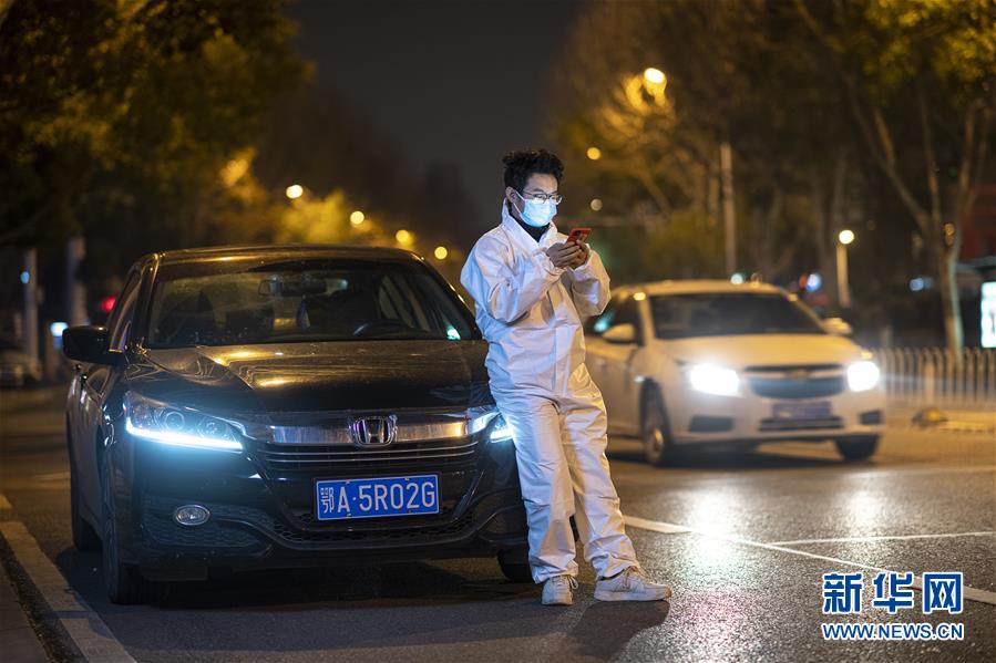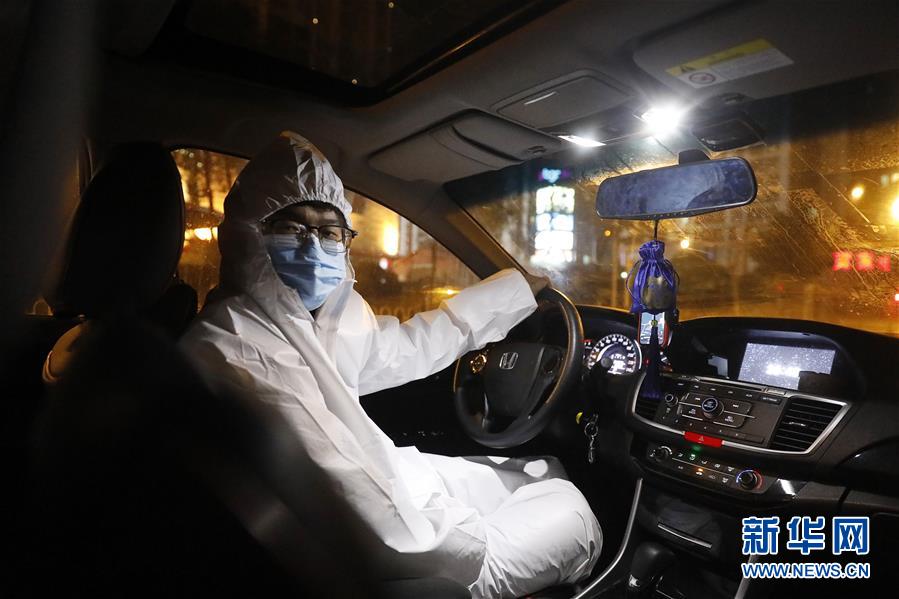 2月21日,王永朋在路邊等待,準(zhǔn)備接單。這個春節(jié)王永朋沒回老家甘肅安陽,他報名擔(dān)任高德醫(yī)護專車志愿者,開著年前剛買的新車,免費接送醫(yī)護人員上下班。因為住在武漢新洲區(qū),距離江漢、武昌等老城區(qū)有相當(dāng)一段車程,他每天早上6點就起床出車,晚上十一二點才能回家休息,一天接送幾十位醫(yī)護人員上下班。每次到達目的地,醫(yī)生和護士下車后做的第一件事,總是向他致謝,還有不少人硬要塞錢給他,穿著防護衣、戴著口罩和護目鏡的王永朋,每次都微笑著退回了。新華社記者熊琦攝