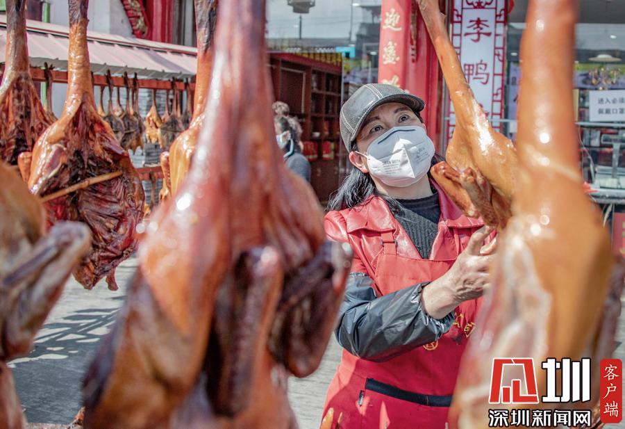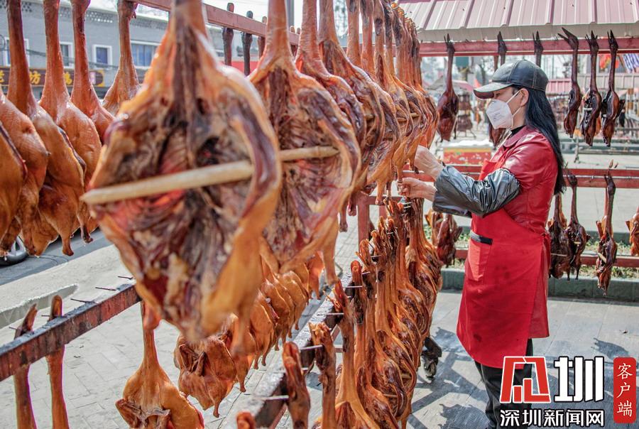 2020年2月28日,走進四川省成都市彭州市九尺鎮(zhèn),拍攝的傳統(tǒng)名吃—九尺板鴨圖片。早在明朝,九尺板鴨已頗有名氣,是當?shù)卮脱缳e的必備菜式。因其主產(chǎn)地在彭州市九尺鎮(zhèn)而得名。