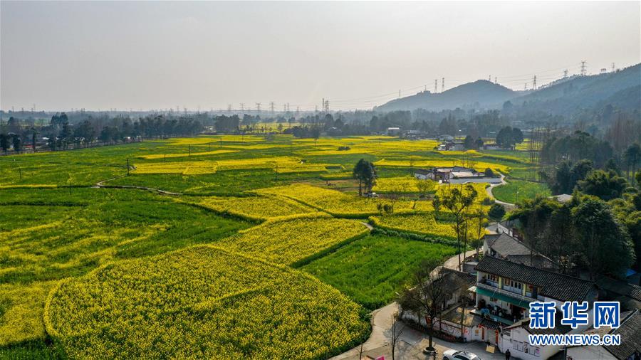 2月25日在四川省崇州市農(nóng)業(yè)產(chǎn)業(yè)功能區(qū)拍攝的油菜花田(無人機(jī)照片)。初春時(shí)節(jié),正值農(nóng)時(shí)。成都平原西部的大邑、崇州等縣市油菜長勢(shì)良好,一片生機(jī)盎然的景象。新華社記者王曦?cái)z
