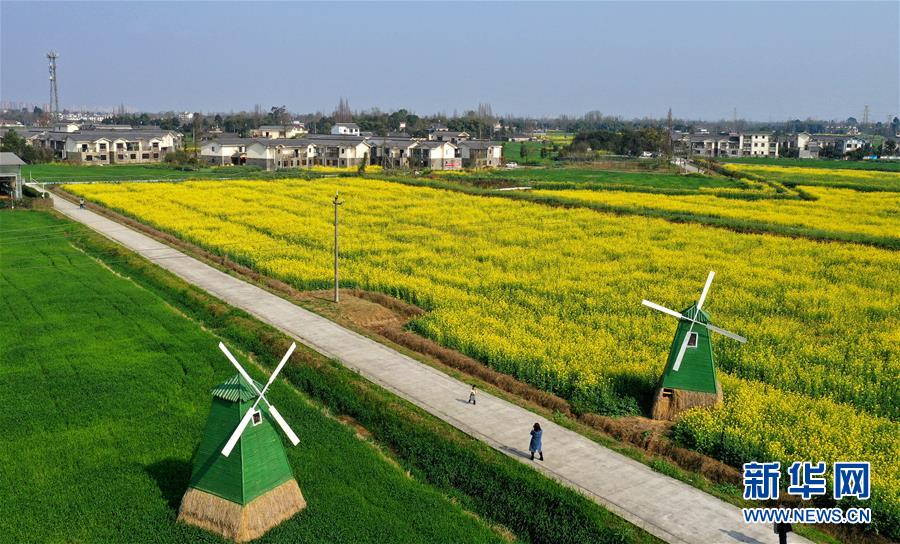 2月25日在四川省崇州市拍攝的油菜花田(無人機(jī)照片)。新華社記者王曦?cái)z