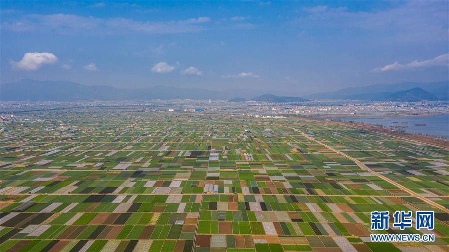 時(shí)下正值農(nóng)忙時(shí)節(jié),云南省玉溪市通??h的農(nóng)作物長勢喜人,山巒、湖水與農(nóng)田組成了一幅美麗的田園詩畫卷。
