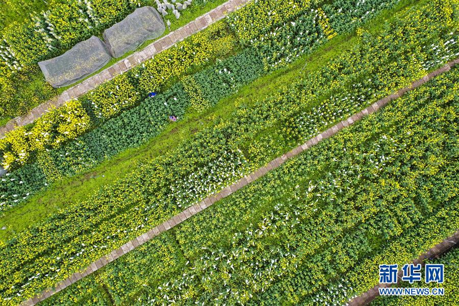 3月5日,工人在重慶市油菜工程技術研究中心油菜試驗田內(nèi)作業(yè)(無人機照片)。時下正值油菜花期,重慶市油菜工程技術研究中心的農(nóng)學專家?guī)ьI學生和技術工人搶抓農(nóng)時,推進油菜科研和育種工作。新華社記者 王全超 攝