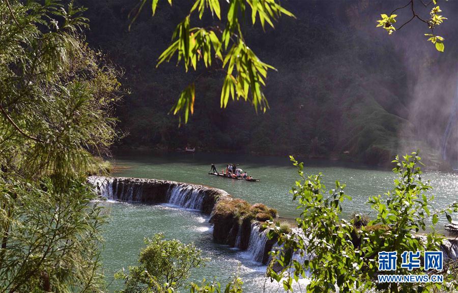 3月8日,游人在云南省曲靖市羅平九龍瀑布群風景區(qū)游覽。 初春時節(jié),云南省曲靖市羅平九龍瀑布群風景區(qū)內(nèi),湖光山色清澈秀麗,美不勝收。 新華社記者 楊宗友 攝