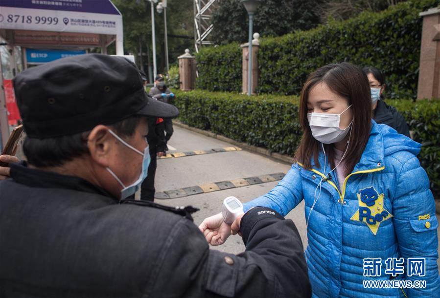 3月12日,小區(qū)安保人員對黎婧進(jìn)行體溫檢測。 3月12日,插畫師黎婧和84位病友離開自己居住的武漢軟件工程職業(yè)學(xué)院康復(fù)驛站,回到自己家中。他們都是治愈出院的新冠病毒肺炎患者,已經(jīng)在武漢軟件工程職業(yè)學(xué)院康復(fù)驛站進(jìn)行了14天醫(yī)學(xué)觀察,達(dá)到醫(yī)學(xué)標(biāo)準(zhǔn),成功解除隔離。他們由專車運送至所屬社區(qū)附近的集散點后,在社區(qū)工作人員的陪同下回家。 新華社記者 肖藝九 攝
