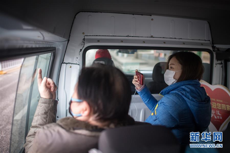 3月12日,黎婧(右)被小區(qū)工作人員接上車后,透過(guò)車窗拍攝熟悉的街道。 3月12日,插畫師黎婧和84位病友離開自己居住的武漢軟件工程職業(yè)學(xué)院康復(fù)驛站,回到自己家中。他們都是治愈出院的新冠病毒肺炎患者,已經(jīng)在武漢軟件工程職業(yè)學(xué)院康復(fù)驛站進(jìn)行了14天醫(yī)學(xué)觀察,達(dá)到醫(yī)學(xué)標(biāo)準(zhǔn),成功解除隔離。他們由專車運(yùn)送至所屬社區(qū)附近的集散點(diǎn)后,在社區(qū)工作人員的陪同下回家。 新華社記者 肖藝九 攝