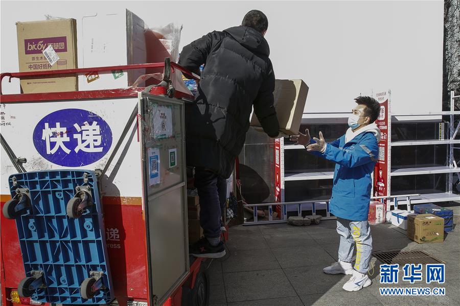 3月12日早晨,李杰在運送快遞的路上。新華社記者張玉薇攝