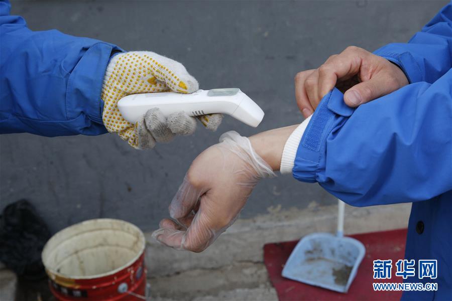 3月12日,李杰在中通快遞北京廠洼路網(wǎng)點(diǎn)上崗前檢測體溫。新華社記者張玉薇攝