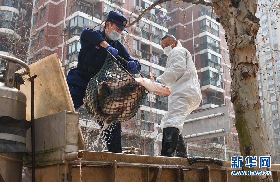 3月13日,一批運(yùn)到武漢市硚口區(qū)華生漢口城市廣場(chǎng)社區(qū)的活魚正在卸貨分裝。當(dāng)日,首批100噸調(diào)配自湖北省咸寧市的活魚運(yùn)抵武漢市硚口區(qū)11個(gè)街道下轄社區(qū)。咸寧是魚米之鄉(xiāng),水產(chǎn)資源豐富。此次戰(zhàn)疫咸寧得到了全國(guó)人民的支持,疫情得到良好控制。咸寧送魚,希望傳遞愛(ài)心,支持武漢早日戰(zhàn)勝疫情。新華社記者程敏攝