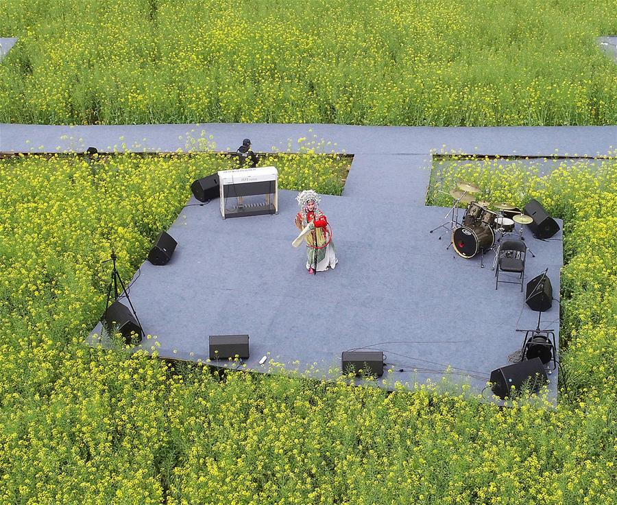 3月16日,演員在李坑村的“花田音樂會(huì)”上表演。 新華社記者 張浩波 攝