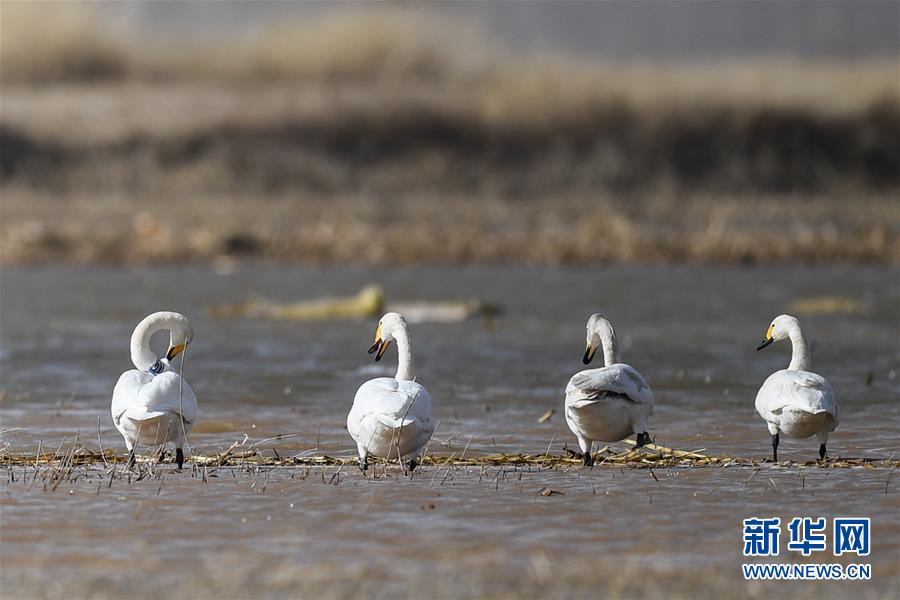 3月18日,候鳥(niǎo)在準(zhǔn)格爾旗大路鎮(zhèn)的黃河淺灘上棲息。 新華社記者 劉磊 攝