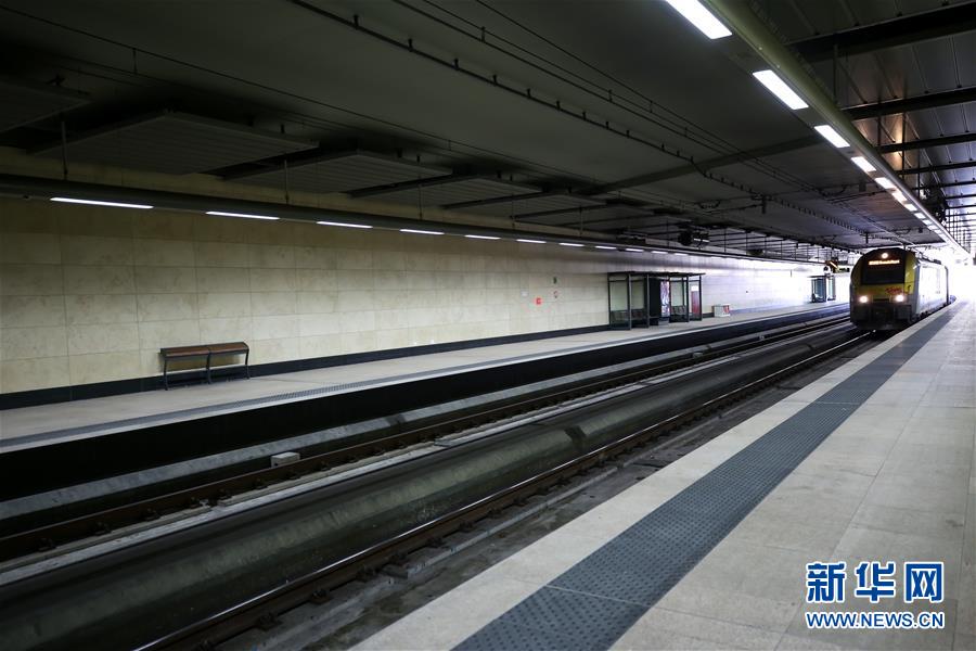 3月18日,在比利時布魯塞爾,舒曼火車站的月臺上空空蕩蕩。 新華社記者 張鋮 攝