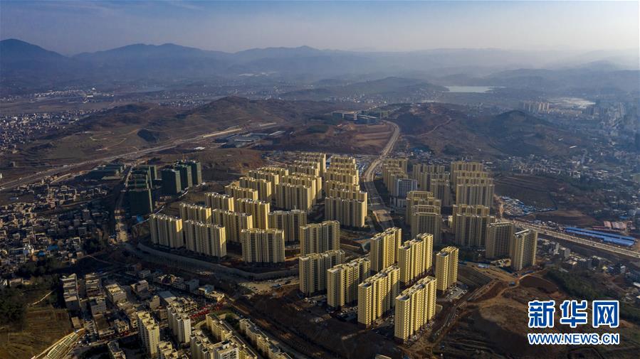 位于云南省魯?shù)榭h的卯家灣易地扶貧安置區(qū)(3月15日攝,無(wú)人機(jī)照片)。 新華社記者 江文耀 攝