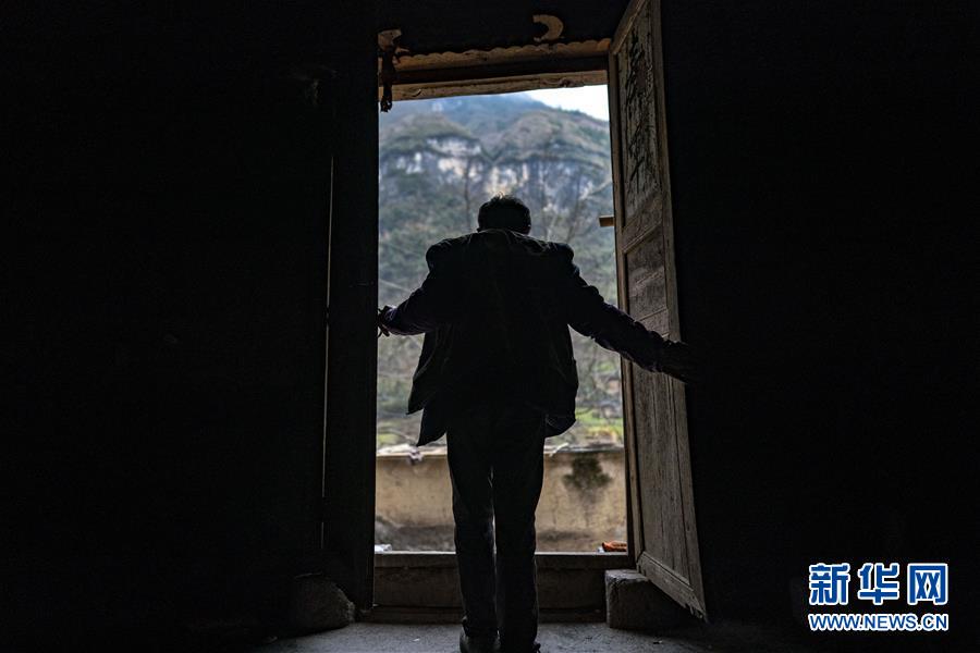 云南省永善縣大興鎮(zhèn)駱丘村村民晏付高關(guān)上老屋的大門(mén)準(zhǔn)備離開(kāi)(3月14日攝)。 新華社記者 江文耀 攝