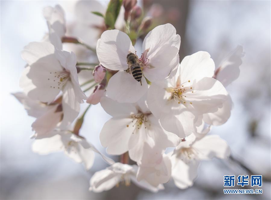 在武漢市武昌區(qū)被網(wǎng)友稱為“武漢最美停車場”的湖北日?qǐng)?bào)停車場,櫻花開放(3月19日攝)。 新華社記者 才揚(yáng) 攝