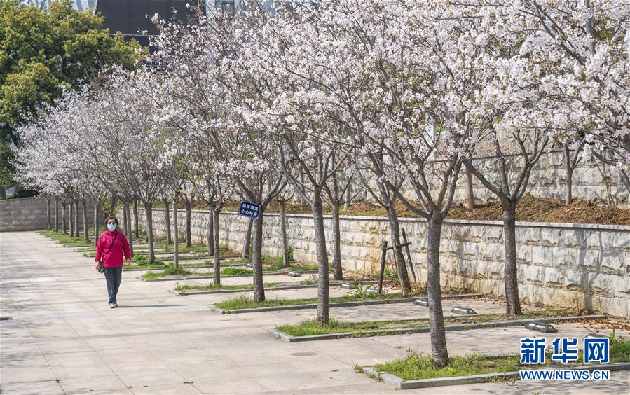 3月19日,在武漢市武昌區(qū)被網(wǎng)友稱為“武漢最美停車場”的湖北日?qǐng)?bào)停車場,一名工作人員從櫻花樹邊經(jīng)過。 新華社記者 才揚(yáng) 攝