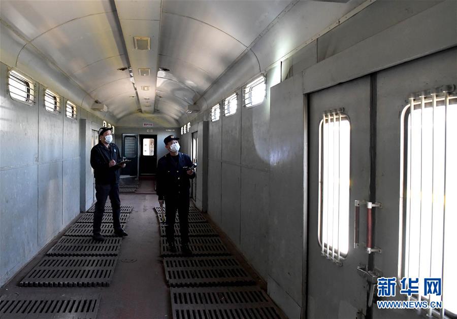 3月19日,鄭州車(chē)輛段客車(chē)檢車(chē)員劉凱(左)和王東亮在檢查客車(chē)行李車(chē)的車(chē)廂內(nèi)部。新華社記者 李安 攝