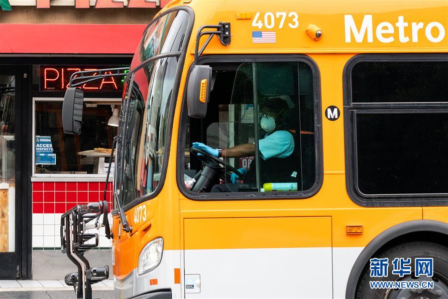 3月20日,在美國(guó)加利福尼亞州洛杉磯,公交車駕駛員戴著口罩。 新華社發(fā)(錢衛(wèi)忠攝)