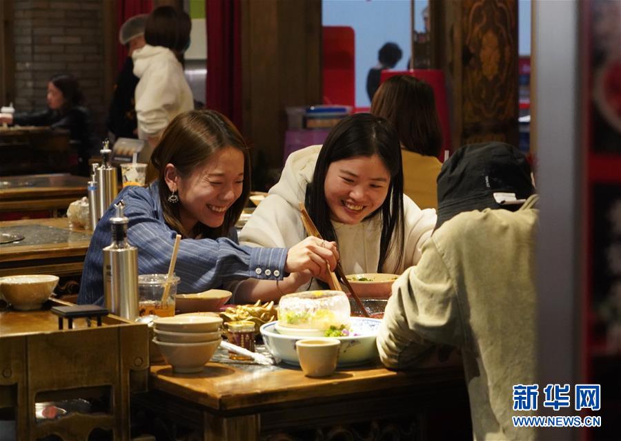 3月21日,在四川省成都市的一家火鍋店內(nèi),顧客在就餐。近日,在做好新冠肺炎疫情防控措施的基礎(chǔ)上,四川省成都市的火鍋店逐漸恢復營業(yè)。新華社記者李夢馨攝