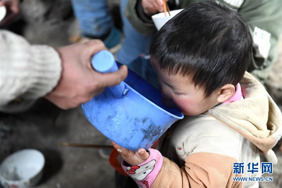 廣西南丹縣里湖瑤族鄉(xiāng),村民給孩子喂水(2018年1月12日攝)。廣西有近一半貧困人口生活在石漠化地區(qū),涉及數(shù)十個(gè)縣區(qū)。這里也是廣西飲水保障程度最低的地區(qū),解決貧困人口飲水問(wèn)題是廣西脫貧攻堅(jiān)戰(zhàn)“硬仗中的硬仗”?!笆濉币詠?lái),廣西加快實(shí)施農(nóng)村飲水安全鞏固提升工程。因地制宜,采取新建、擴(kuò)建及管網(wǎng)延伸等多種措施,補(bǔ)齊貧困地區(qū)水利薄弱短板,進(jìn)一步提升石漠化地區(qū)群眾飲水安全保障水平,助推脫貧攻堅(jiān)。新華社記者周華攝