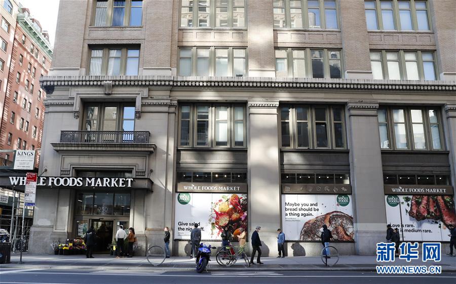3月21日,在美國紐約,人們排隊(duì)時(shí)保持距離,準(zhǔn)備進(jìn)入一家超市購物。美國紐約州、伊利諾伊州、康涅狄格州20日發(fā)布針對本州居民的“居家令”,以遏制新冠病毒傳播。這些“居家令”涵蓋紐約、洛杉磯、芝加哥等大城市,影響數(shù)千萬人。白宮20日發(fā)表聲明說,總統(tǒng)特朗普已宣布紐約州出現(xiàn)“重大災(zāi)難”,命令聯(lián)邦政府支援該州抗擊新冠肺炎疫情。新華社記者王迎攝