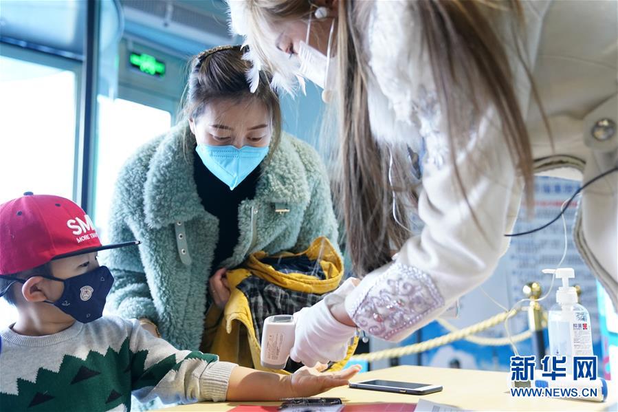 3月23日,在哈爾濱極地館入口,工作人員在給游客測量體溫。當(dāng)日,哈爾濱極地館恢復(fù)營業(yè)。目前,極地館日接待人數(shù)不超過400人,園區(qū)采取分時(shí)段、間隔性辦法安排游客有序入園。游客實(shí)名預(yù)訂門票,入園要配合測溫、佩戴口罩、掃描“龍江健康碼”,刷身份證入館。新華社記者王建威攝