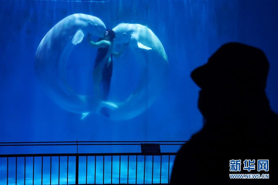 3月23日,游客在哈爾濱極地館觀賞白鯨表演。當(dāng)日,哈爾濱極地館恢復(fù)營業(yè)。目前,極地館日接待人數(shù)不超過400人,園區(qū)采取分時(shí)段、間隔性辦法安排游客有序入園。游客實(shí)名預(yù)訂門票,入園要配合測溫、佩戴口罩、掃描“龍江健康碼”,刷身份證入館。新華社記者王建威攝