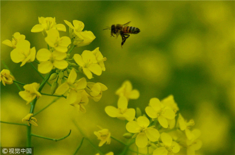 2019年2月5日,廣西來賓,當天是農(nóng)歷大年初一,人們在忻城縣城關鎮(zhèn)隆光村油菜花海中賞花游玩。