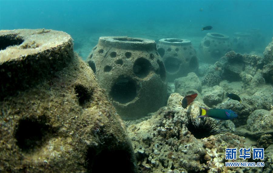 3月28日,在位于海南三亞蜈支洲島旅游區(qū)的海洋牧場(chǎng),工作人員將人工魚礁有序擺放在海底,人工魚礁吊裝擺位作業(yè)完成。近日,位于海南三亞蜈支洲島旅游區(qū)的海洋牧場(chǎng)復(fù)工,海底作業(yè)逐漸恢復(fù)正常,開始進(jìn)行人工魚礁吊裝擺位、水下監(jiān)控清理以及日常巡護(hù)等工作。據(jù)介紹,人工魚礁有利于魚類種類增加和數(shù)量提高,蜈支洲島海域海洋牧場(chǎng)人工魚礁表面附著珊瑚、貝類、藻類等生物種類達(dá)120余種。新華社記者楊冠宇攝