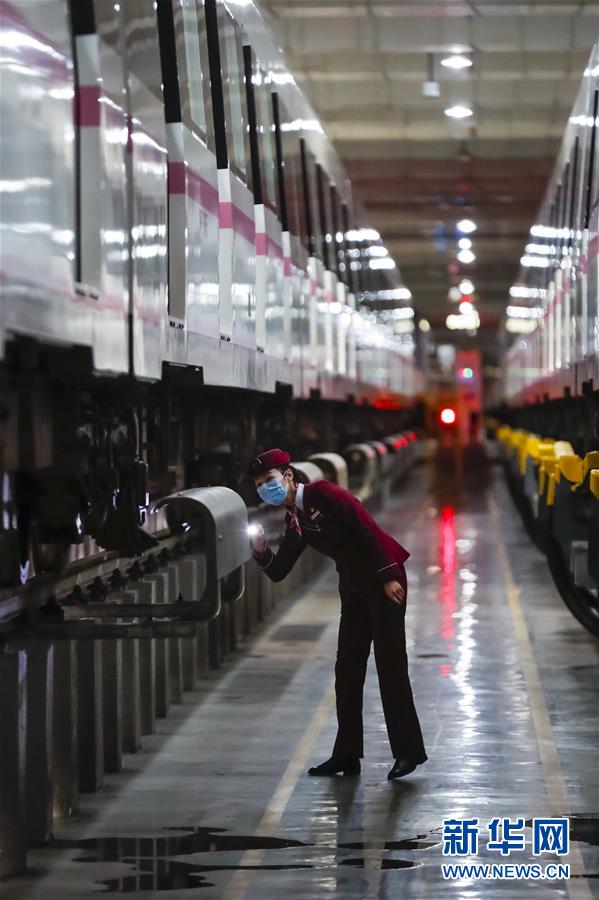 3月28日,武漢地鐵運(yùn)營(yíng)有限公司司機(jī)吳亞在常青車(chē)輛段檢查車(chē)輛情況。新華社記者沈伯韓攝