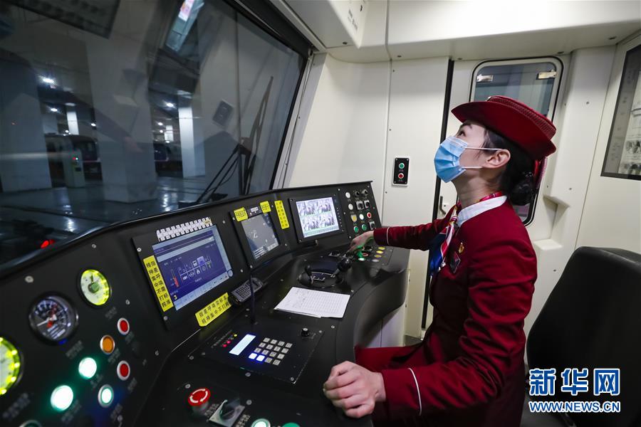 3月28日,武漢地鐵運營有限公司司機(jī)吳亞在常青車輛段檢查車輛情況。新華社記者沈伯韓攝