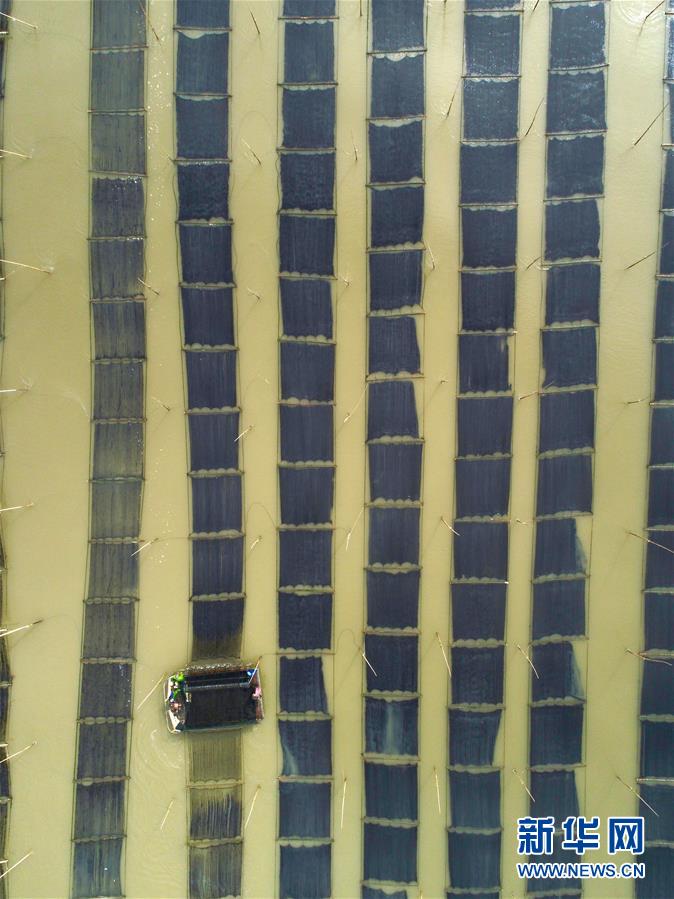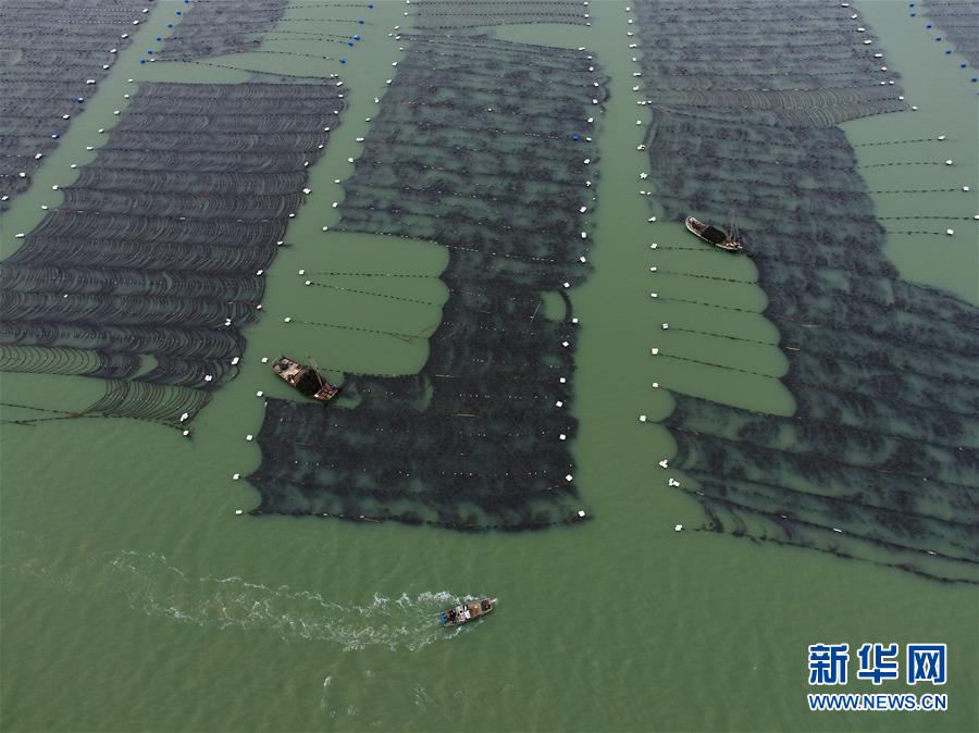 近日,福建省莆田市湄洲灣北岸蔣山村的2000多畝種植紫菜進入收割旺季,當地村民搶收頭水紫菜。蔣山村現有200多家紫菜種植戶,紫菜種植成為當地村民增收致富的主要產業(yè)。