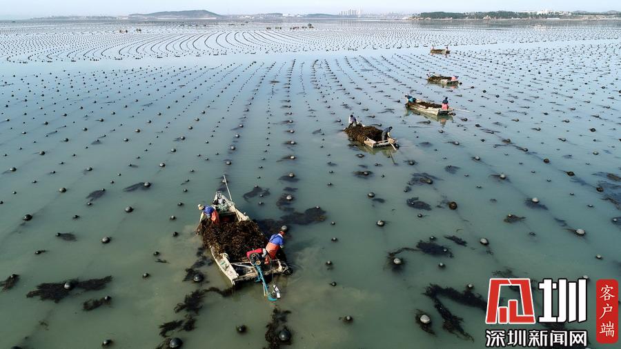 目前正是遼寧省大連市長海縣扇貝和魚類收獲的季節(jié),長??h小長山島海域經典國家級海洋牧場呈現出一片繁忙的豐收景象。