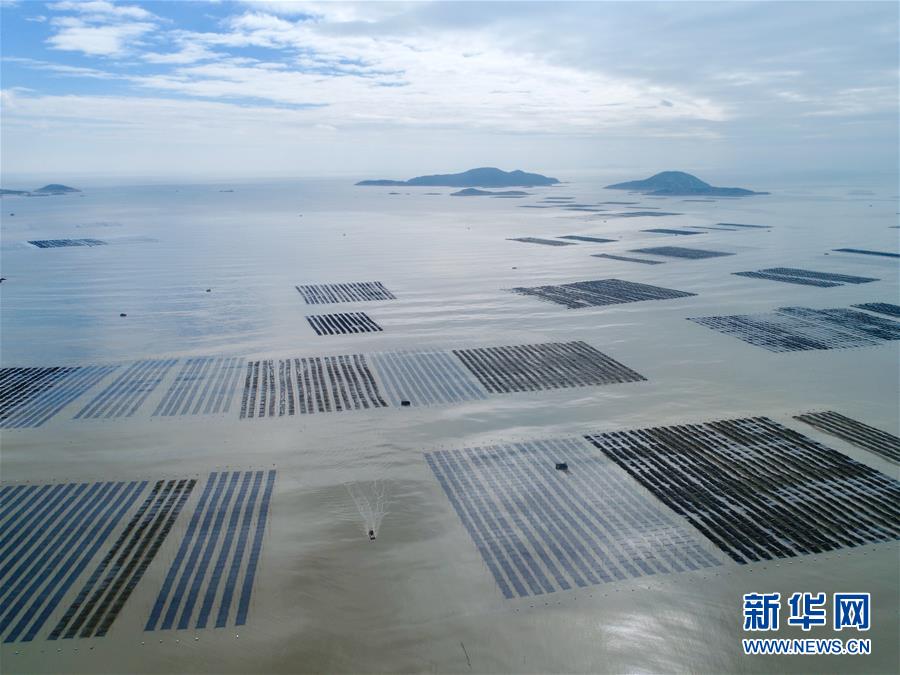 這是11月4日無人機拍攝的霞浦縣三沙鎮(zhèn)的紫菜種植區(qū)。近日,福建省霞浦縣沿海6萬畝紫菜迎來收獲季節(jié),漁民們出海收獲紫菜,海上田園一派繁忙豐收景象。新華社記者姜克紅攝