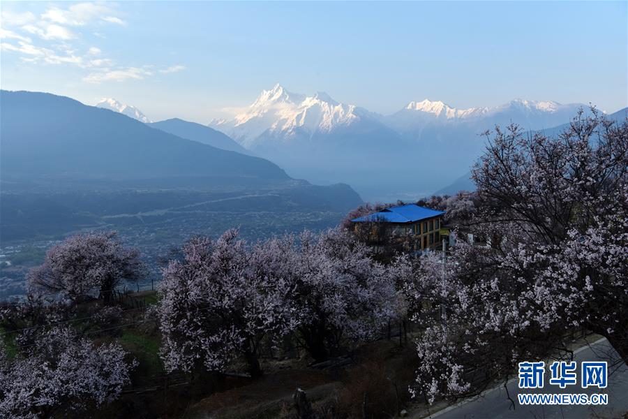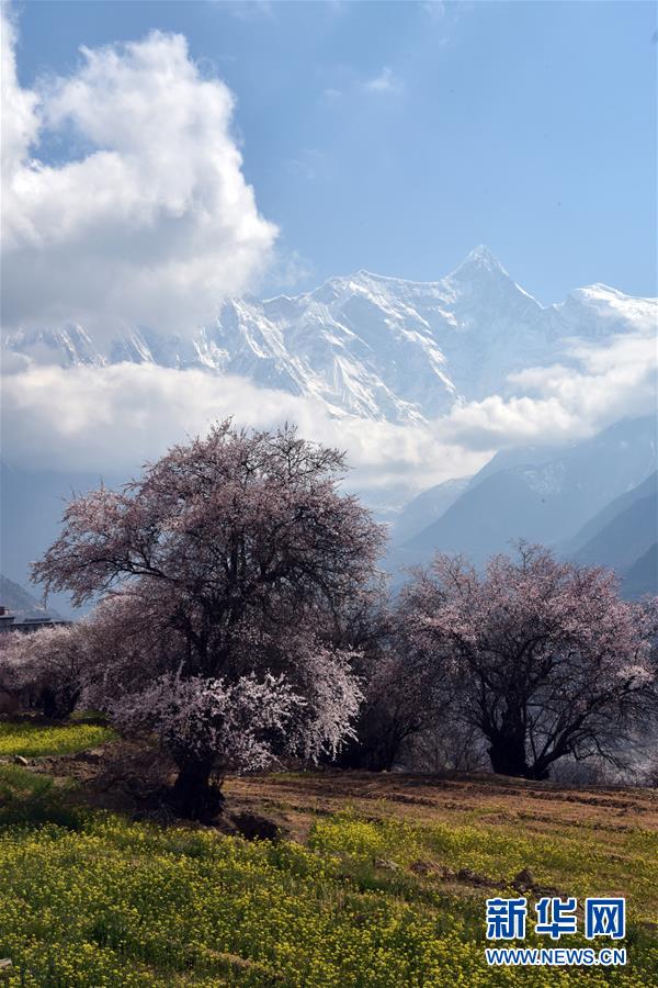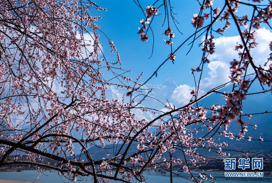 南迦巴瓦峰下盛開的桃花(4月1日攝)。新華社記者黃豁攝