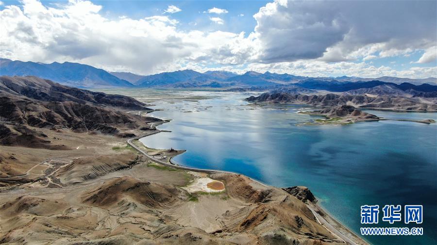 普姆雍錯湖緊挨著公路,是自駕游的理想目的地(9月19日無人機(jī)拍攝)。新華社記者晉美多吉攝