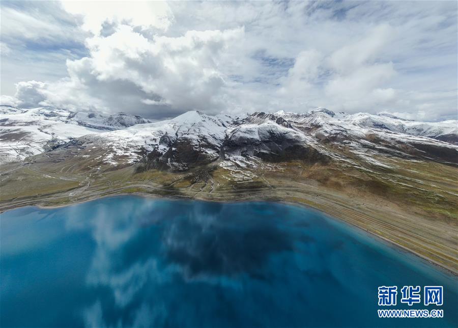 8月31日無人機(jī)拍攝的羊卓雍錯風(fēng)光。新華社記者晉美多吉攝